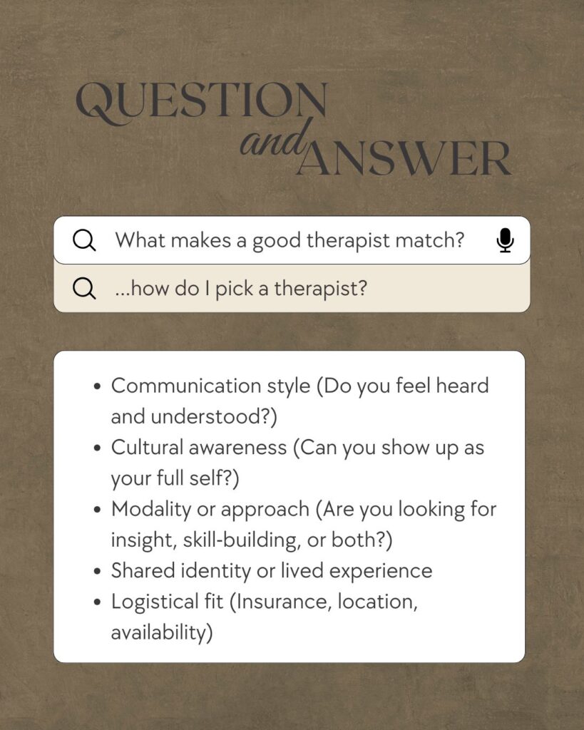 If you’ve been thinking about therapy but haven’t found someone who feels right, that’s worth honoring. The connection you build with your therapist is one of the most powerful tools for healing. 🌿
